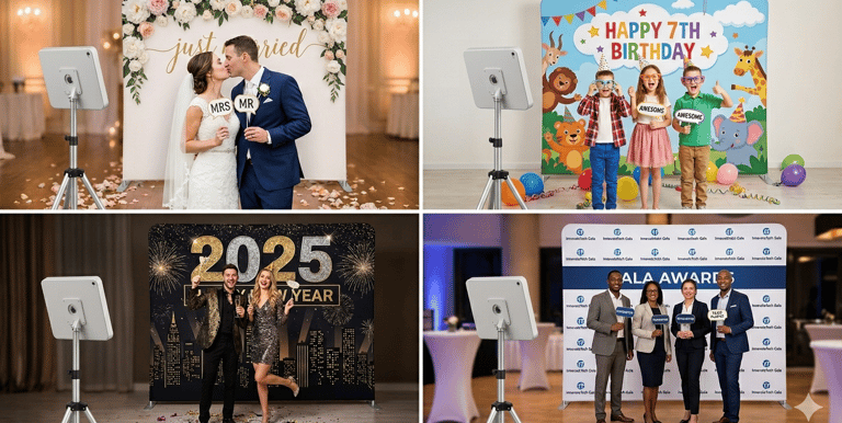 Whether your event is two hours long or eight, the cost to rent our Photo Booth kiosk is always a flat $300. Need more time? Let us know and we will do everything we can to accommodate your event. Want to bring your own backdrop and props? Great? Want us to provide them? Ask about these add-on options.